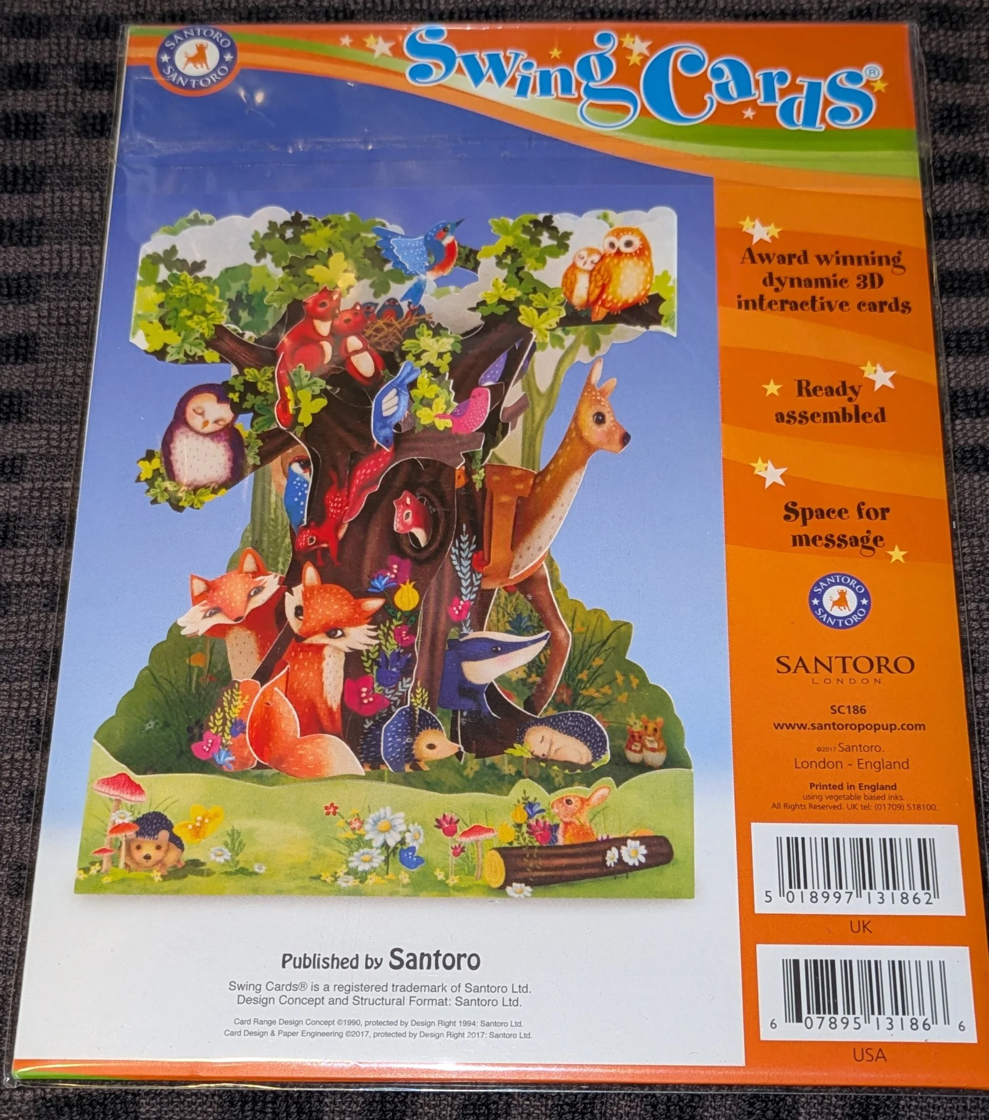 Beautifully illustrated and intricately designed, this is a Santoro Swing Card paper sculpture featuring Woodland Creatures.